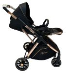 •قابلیت تنظیم صندلی: صندلی کالسکه قابلیت تنظیم در حالتهای مختلف را دارد و میتوان آن را به کریکات تبدیل کرد که برای نوزادان مناسب است.