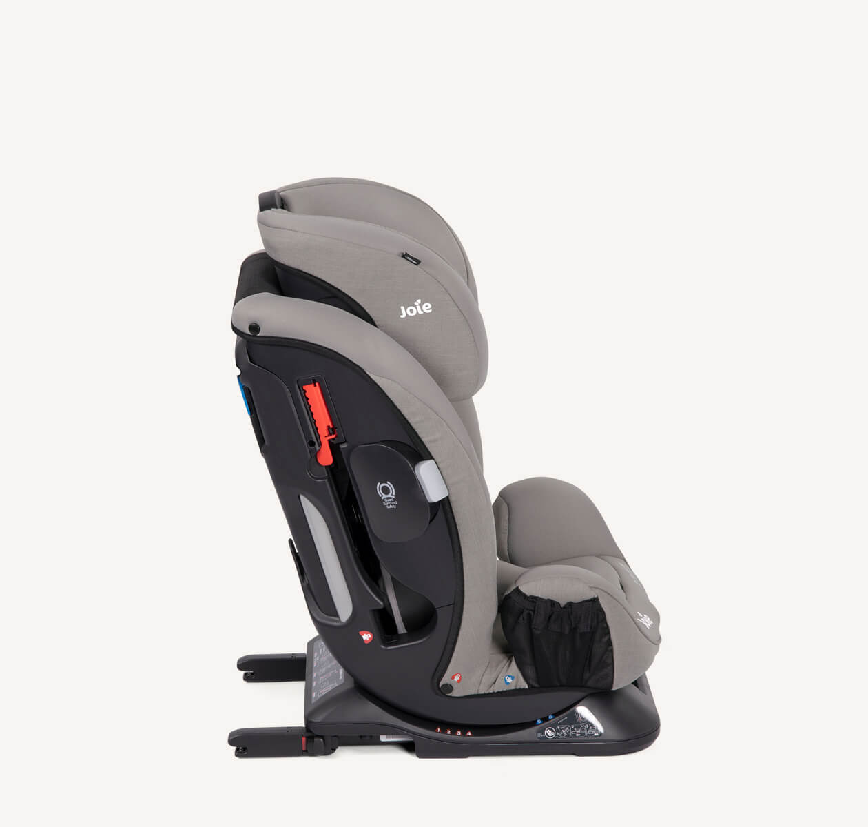 Joie Every Stage FX با سیستم ایزوفیکس (ISOFIX) نصب محکمتری روی صندلی خودرو داره و کمربند ایمنی هم در کنار اون قابل استفادهست. بدنهی این صندلی از فریم فولادی تقویتشده ساخته شده که در تصادفها از کودک محافظت بیشتری میکنه. همچنین لایههای جانبی محافظ (Guard Surround Safety) در برابر ضربه طراحی شدن تا ایمنی کاملتری ارائه بدن.