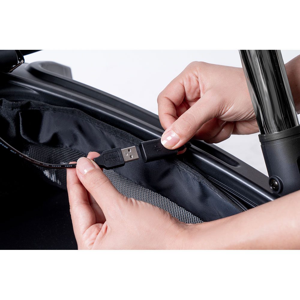 •ترمز الکتریکی خودکار: این کالسکه مجهز به سیستم ترمز الکتریکی پیشرفتهای است که با استفاده از حسگرهای هوشمند، در صورت رها شدن دسته توسط والدین، بهصورت خودکار فعال میشود و از حرکت ناخواسته کالسکه جلوگیری میکند.