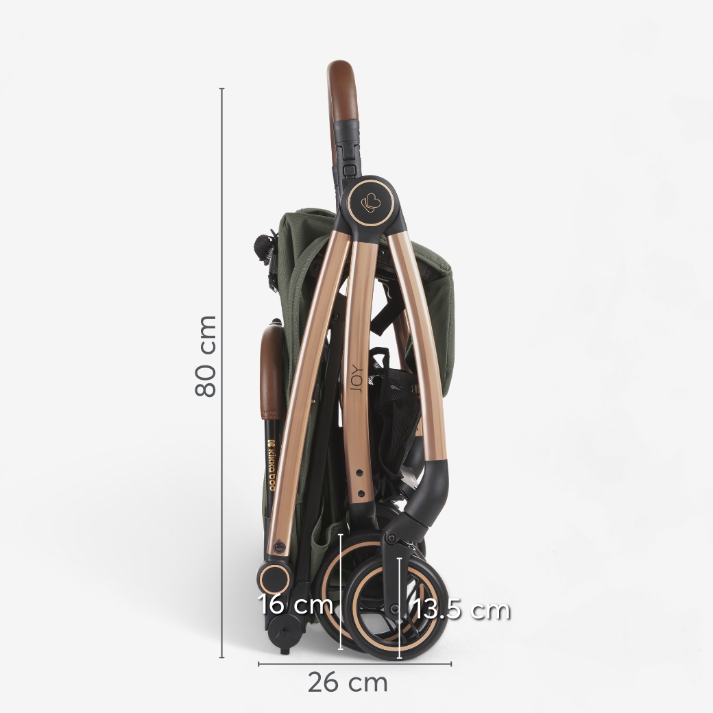 قابلیت جمع شدن با یک دست، یکی از ویژگیهای محبوب کالسکه Joy هست. بعد از جمع شدن، فضای بسیار کمی اشغال میکنه و بهراحتی توی صندوق ماشین یا حتی داخل کابین هواپیما جا میشه. دستهی چمدونی هم حملش رو آسونتر کرده.