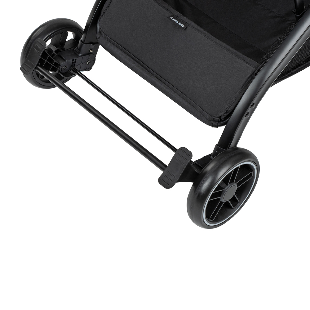 این کالسکه مسافرتی Kikkaboo مدل Miley دارای فریم آلومینیومی مقاوم و در عین حال سبک است که دوام بالایی دارد و در برابر ضربه و خوردگی مقاوم است. دستهی آن از جنس نرم و ارگونومیک ساخته شده تا هنگام هل دادن کالسکه احساس خستگی نکنید. چرخهای جلوی آن قابلیت چرخش ۳۶۰ درجه دارند و با سیستم تعلیق، حرکت نرم و روانی را روی انواع سطوح فراهم میکنند. ترمز عقب نیز تنها با یک فشار فعال میشود تا ایمنی کامل نوزاد تضمین گردد.